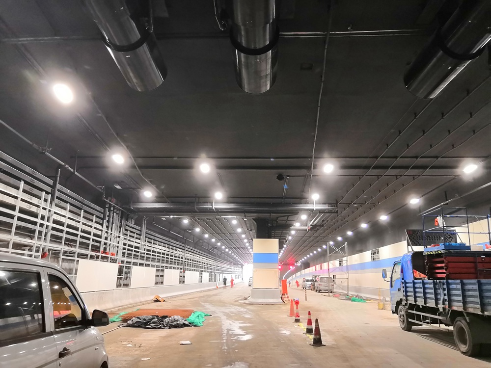 为单管双层布置的隧道,设计时速40km/h,工程造价12.58亿元。地下车道采取双向4车道布置,地面